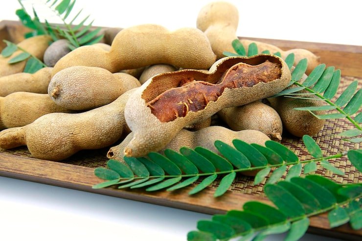 - Description: The fruit comes in brown, indehiscent, pod-like shells, which are easily cracked open to reveal a sticky, sweet-sour, edible pulp surrounding several hard, dark brown seeds. The pulp is traversed by branched, woody strands. Thai varieties are often specifically “sweet tamarind” (Mithi Imli).